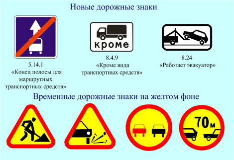 Помимо этого, в местах производства дорожных работ изменениями предусмотрено применение временных дорожных знаков на желтом фоне.